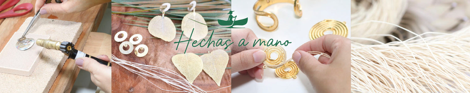 Utilizamos tallos de plantas, hojas de palmeras, semillas, madera y piedras naturales para crear diseños de biojoyas únicas y especiales.